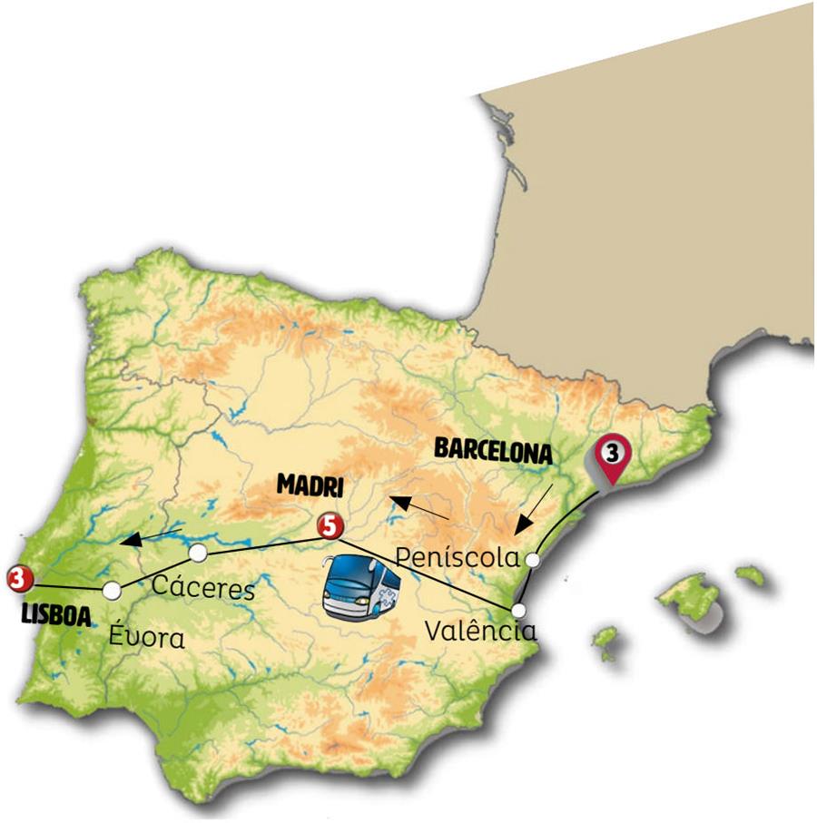 Barcelona, peniscola, Valência, Madrid, Merida, Évora, Lisboa.