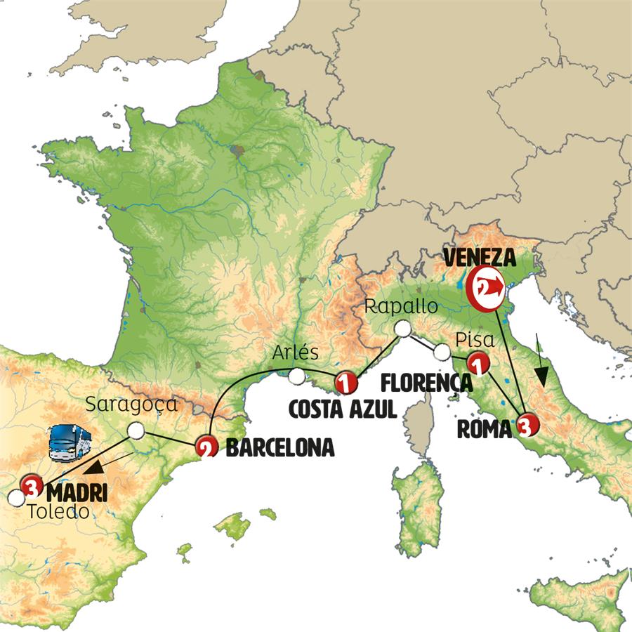 Visita Panorâmica em: Veneza, Asís, Roma, Florença, Barcelona, Madri