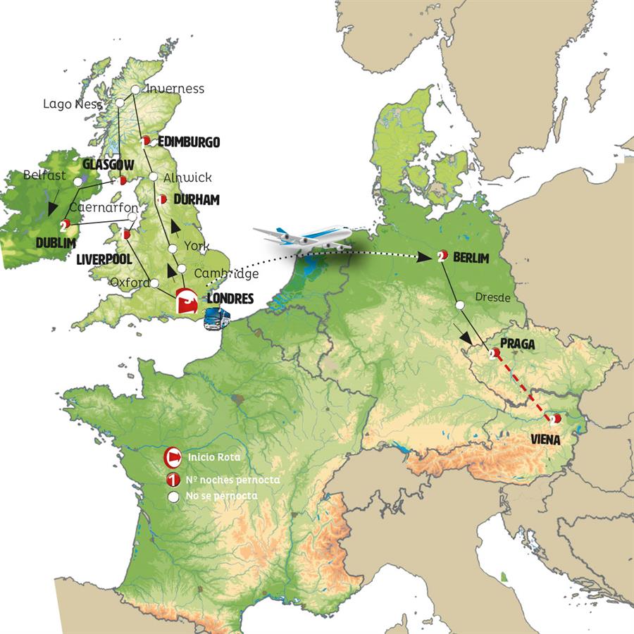 Londres, Cambridge, York, Durham, Alnwick, Edimburgo, Inverness, Lago Ness, Fort Augustus, Glasgow, belfast, Dublin, Caernarfon, Liverpool, stratford, Oxford, Berlim, Dresden, Praga.