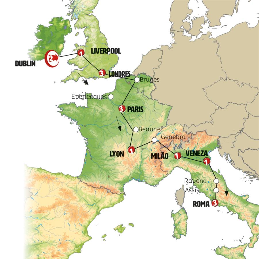 Visita Panorâmica em: Dublim, Londres, Paris, Veneza, Asís, Roma