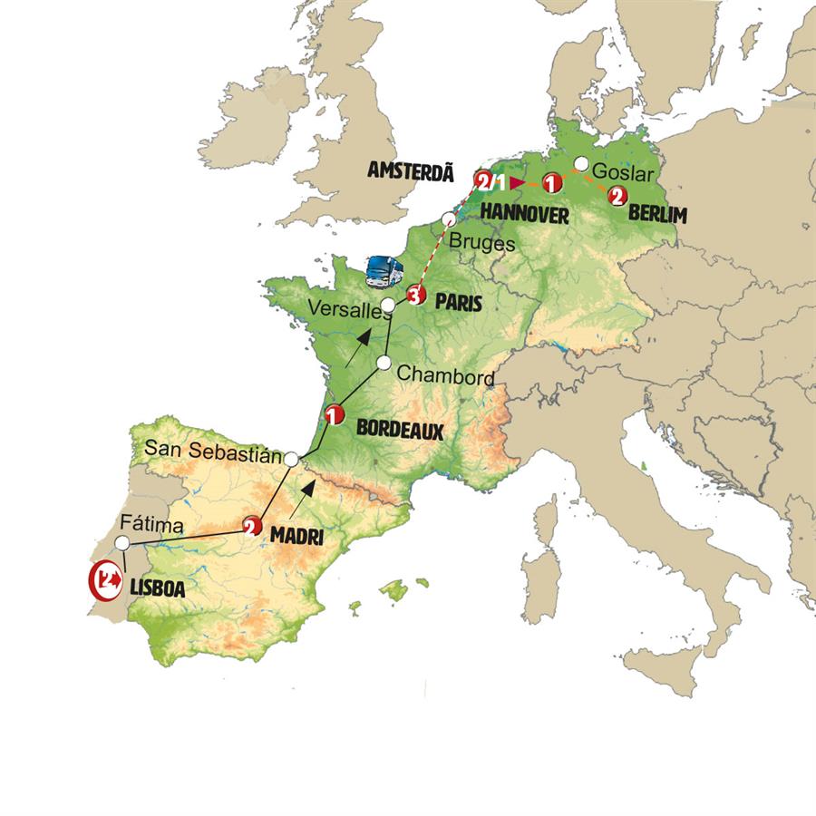 Visita Panorâmica em: Lisboa, Madri, Paris, Amsterdã, Berlim