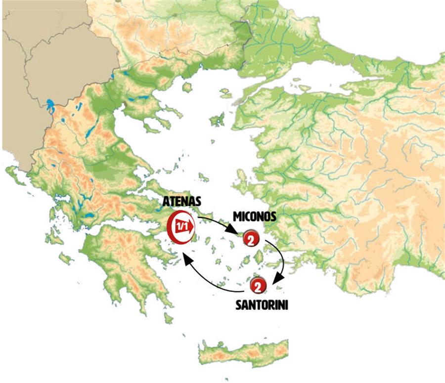 Atenas, miconos, Santorini.