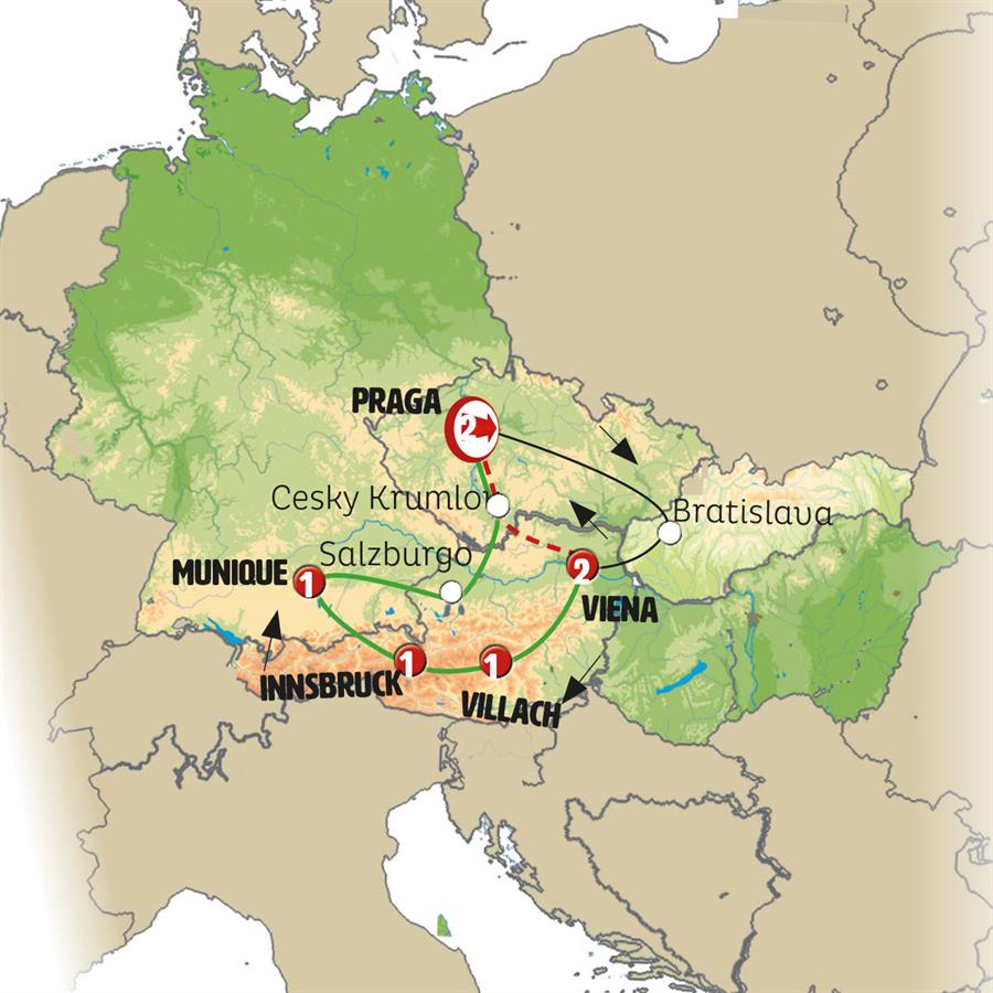 Praga, rBrno, Bratislava, Viena, Linz, Cesky Krumlov.
