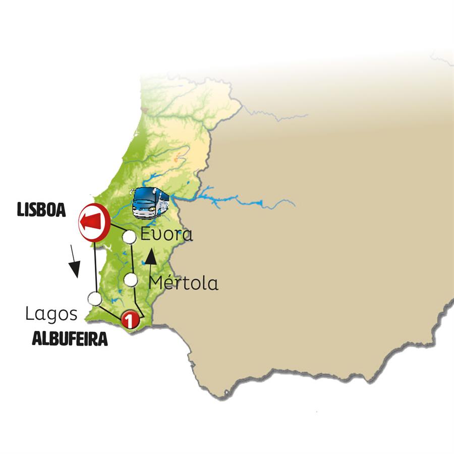 Bem-vindo ao seu circuito Europamundo!Sairemos cedo rumo ao sul de Portugal. Bonitas paisagens atravessando a longa ponte sobre o rio Tejo. Chegada ao ALGARVE, a região do sul de Portugal. Conheceremos a cidade histórica de LAGOS com seu porto de onde saíam as naus portuguesas para o Brasil e seu centro histórico encerrado entre muralhas. Tempo para almoçar. À tarde viajaremos à ponta mais ocidental do continente europeu, entre barrancos e ventania frequente conheceremos o CABO DE SÃO VICENTE. Teremos também a oportunidade de fotografar a fortaleza vizinha de SAGRES. Depois disso disporemos de tempo em ALBUFEIRA, bela cidade costeira, onde você poderá desfrutar de sua praia ou passear pelo seu animado centro histórico. Hospedagem em Albufeira ou cidade próxima do Algarve.