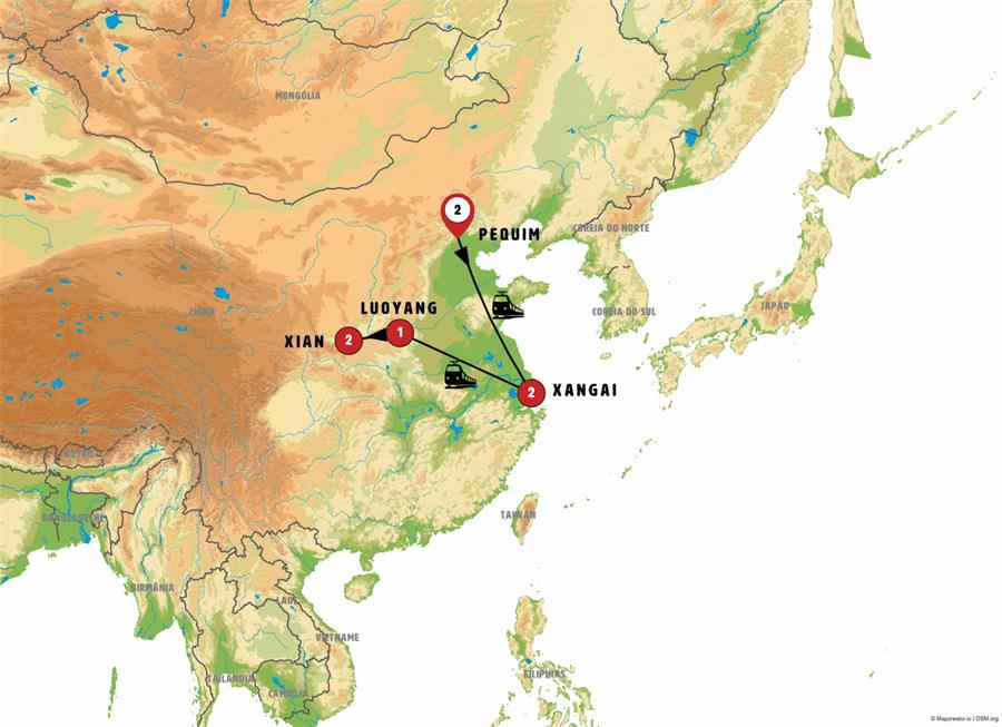 Depois do café do manhã Traslado à estação. Sairemos cedo para tomar o trem de alta velocidade (saída prevista do trem as 7.17 hrs.). Em pouco mais de 5 horas nosso trem faz quase 1.000 km, ou seja, a distância que separa a cidade de Xangai da cidade de Luoyang. Chegada à estação de LUOYANG. Almoço incluido. Conheceremos as impressionantes grutas budistas de LONGMEN, ao logo de mais de um quilômetro, nas paredes rochosas do rio foram esculpidas mais de 100.000 imagens de Buda. Faremos um passeio de barco. Depois Traslado à cidade velha, adentraremos por sua impressionante muralha onde poderemos desfrutar da grande atividade tradicional e suas iluminadas ruas.