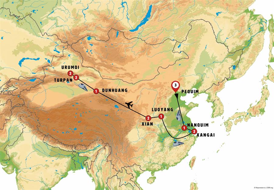 Beijing, Nanjing, Suzhou, Tongli, Shanghai, Luoyang, longmen , sanmexia, Xian, Dunhuang, Turpan, Urumqi.