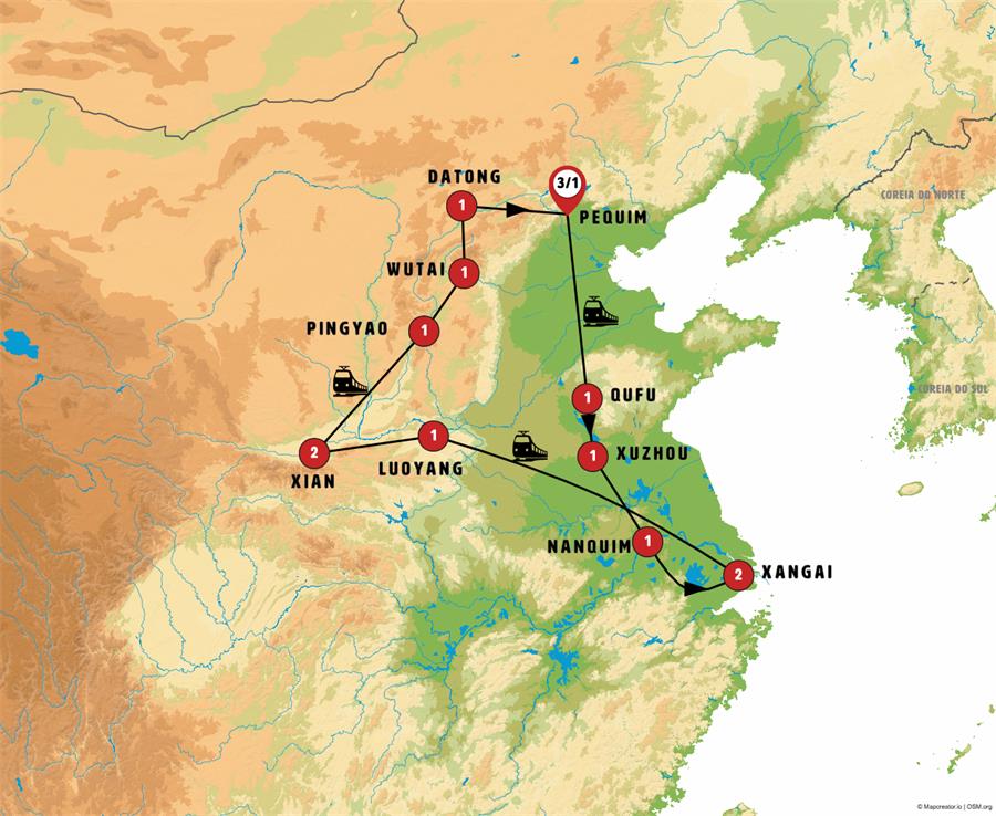 Trem alta Velocidade: Pequim - Taian, Xangai - Luoyang , Xian - Lingfen