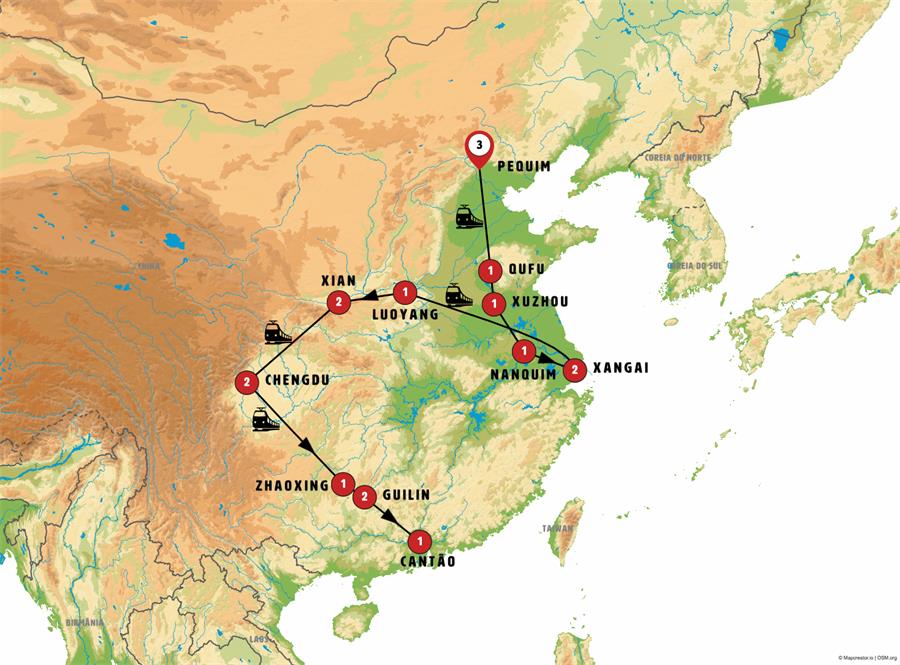 Trem alta Velocidade: Pequim - Taian, Xangai - Luoyang , Xian-Chengdu , Chengdu - Congjiang