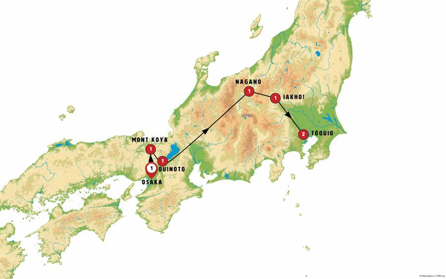 Entradas: Mausoléu de Okuno, Templo de Kongobu-ji e Ajikan ou Zazen meditaão no Monte Koya, Santuário Fushimi Inari, Palácio Imperial, Templo de Kinkaku-ji , Castelo do Matsumoto , Templo Zenko-ji, Cerimônia do Gomakuyo, Parque dos Macacos em Jigokudani em Nagano , Templo Toshogu, Mausoléu Taiyuinbyo em Nikko. , Metrô, Templo Zojoji, Templo Meiji, Templo Sensoji, Tokyo Skytree (até o mirante Tembo Deck)