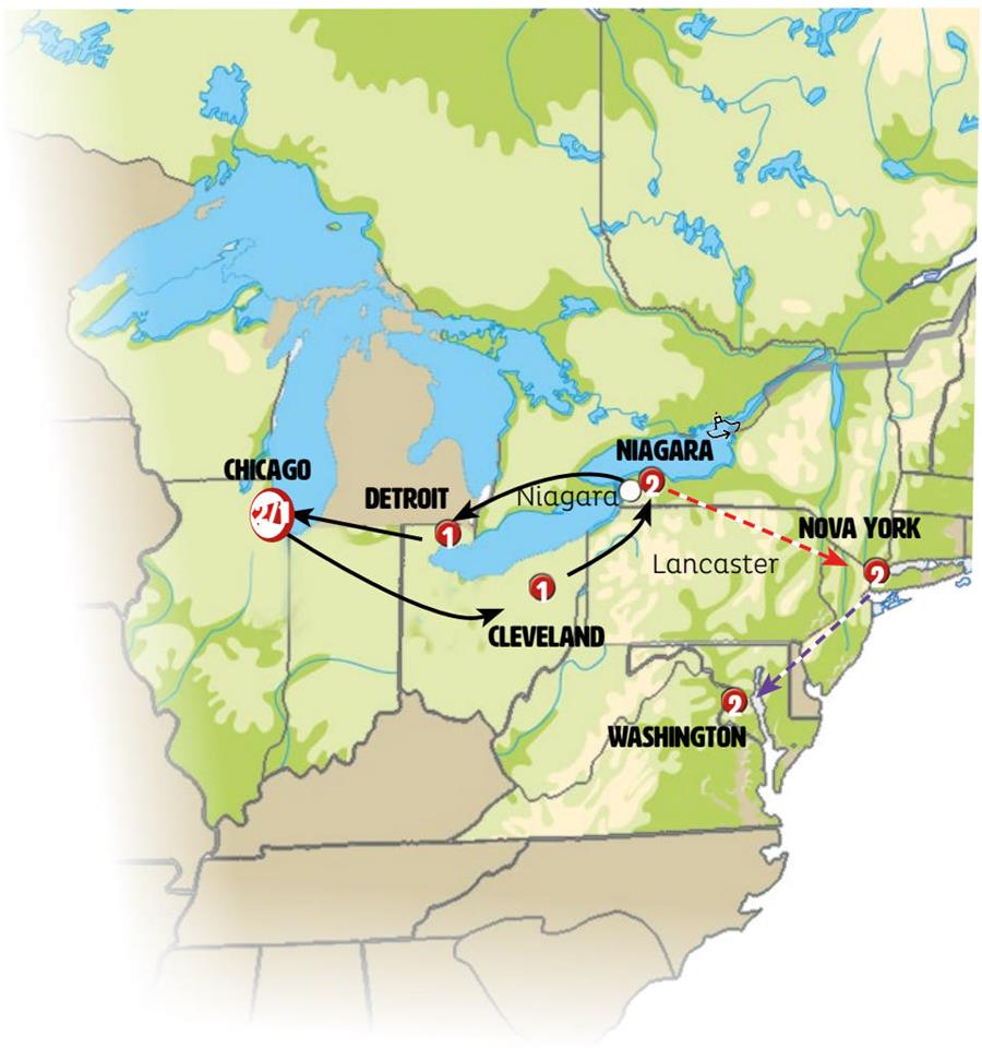 Chicago, Cleveland, Cataratas do Niagara, Detroit, saugatuck.