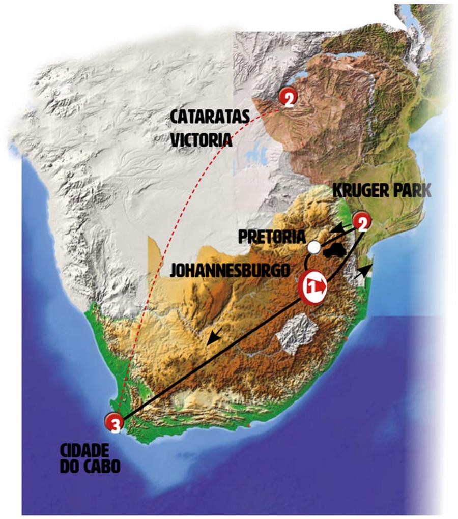 Joanesburgo, Mpumalanga, Kruger, Pretória, Cape Town.