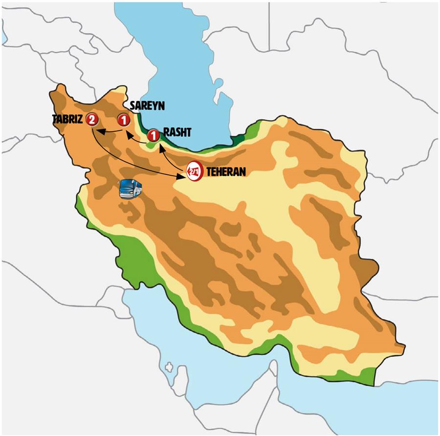 teheran, qazvin, rasht, bandar-e anzali, puente de cristal, sareyn, ardebil, Tabriz.